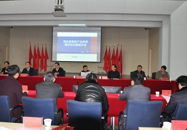 湖北省教育廳副廳長歐陽建平主持聘任儀式,省委人才辦專職副主任劉仲初宣讀了《省教育廳關于公布首批湖北產業教授的通知》,省委高校工委書記、省教育廳廳長劉傳鐵等為23名獲聘產業教授頒發了證書,14所聘任高校校領導為產業教授頒發了聘書。